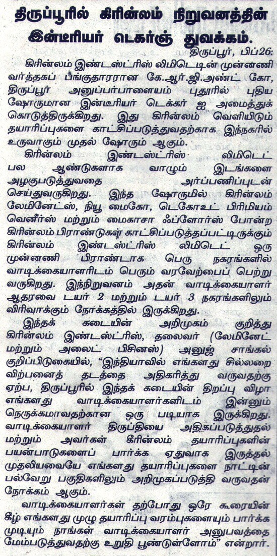 Greenlam showroom in Tirupur